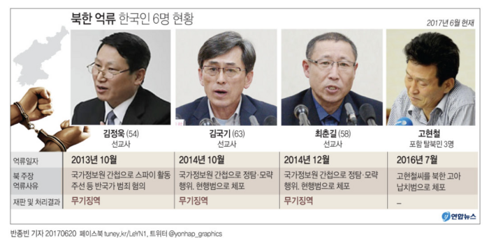 - 그렇습니다. 한국인 억류에 대한 질문은 미국에서 제기를 했는데요. 북한에 억류되어 있는 김정욱, 김국기, 최춘길 선교사를 포함한 한국인 6명의 행방에 대한 답변을 북한에 요구했습니다.