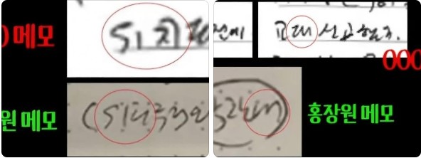 홍장원과 박선원의 글씨체 비교 - 인터넷 캡쳐