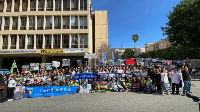 LA 중국 영사관앞 시위 장면 - 독자 제공