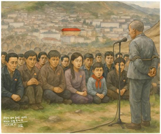 어린 딸과 아들을 두고 집을 떠난 아버지는 당과 수령을 위해 헌신했다.