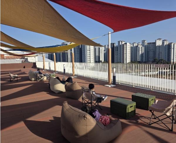충남도서관, 하늘정원에 캠핑 의자·빈백 등 설치…독서·휴식 동시에
