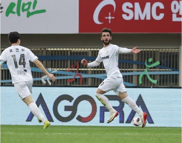 김해의 반격도 만만치 않았다. 전반 27분 브루노 코스타의 정교한 프리킥을 박상준이 헤더로 연결했으나 상대의 선방에 막혔고, 이어진 코너킥 상황에서 여재율의 헤더도 골문을 살짝 빗나갔다.